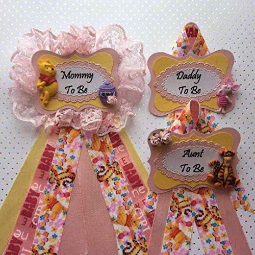 5 out of 5 stars. Thank you to everyone that came to our baby shower little peanut had a great time at his first party. Classic Winnie the Pooh Baby Shower Mommy to Be Corsage floral sash - Baby Pink Yellow Ivory.