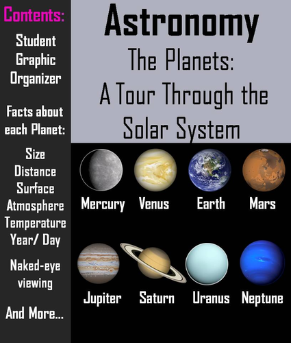 Solar System Graphic Organizer - Graphic Notes with Student DirectionsStudents will color and fill in information about objects in our solar system. Use this form to write a report on a famous astronaut. Planets of the Solar System Reviews the planets of the solar system with increasing distance from the sun their orbits and rotations.